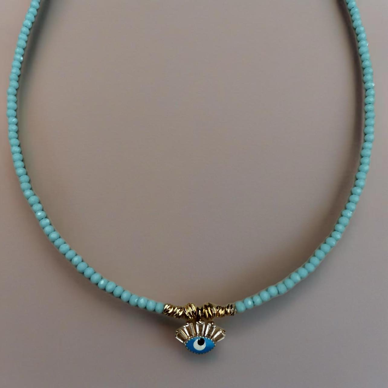 Κολιέ με χάντρες και μεταλλικό ματάκι