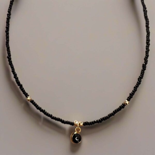 Κολιέ με χάντρες και μεταλλικό ματάκι με σμάλτο