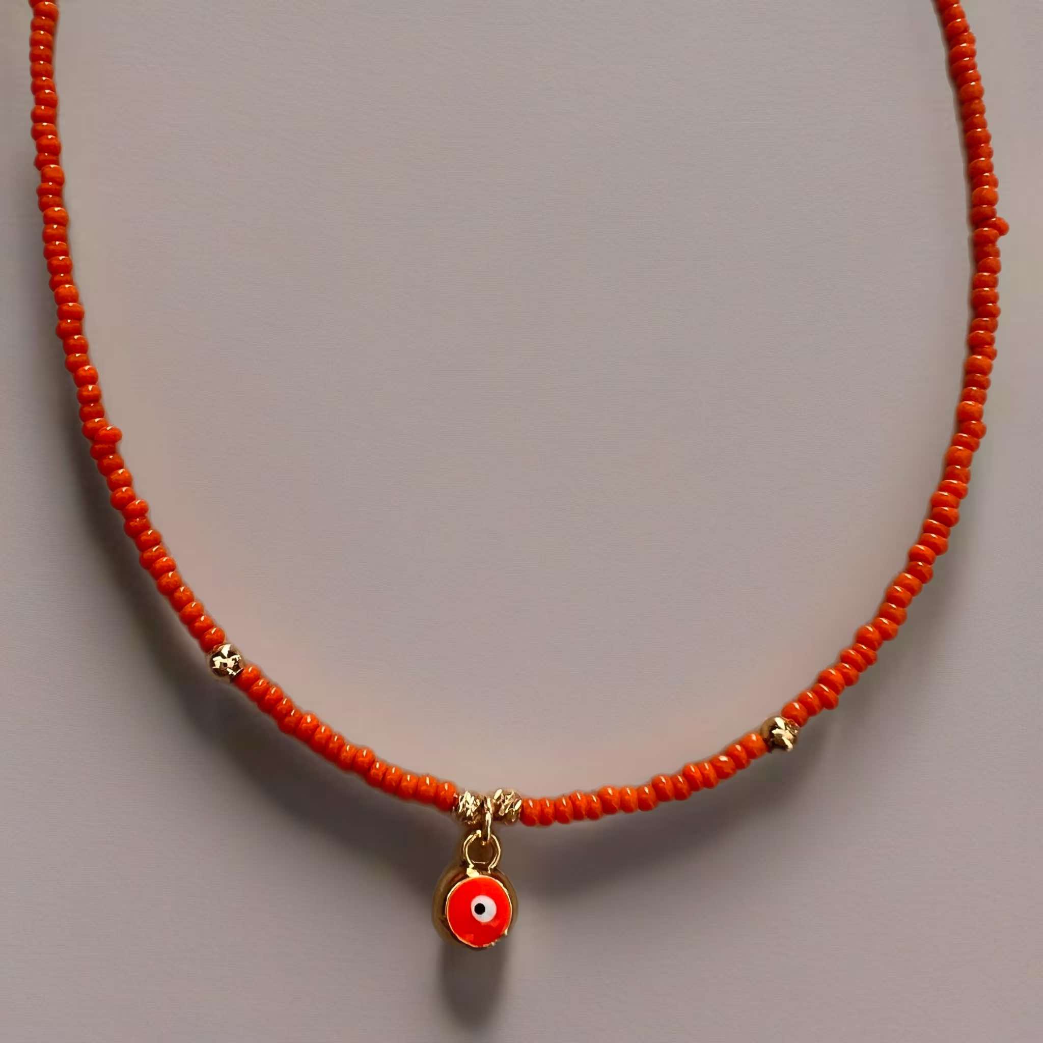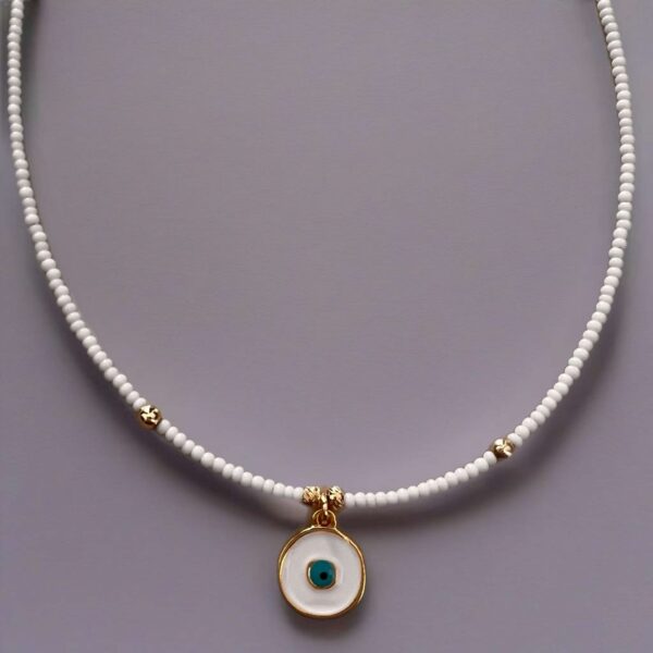 Κολιέ με χάντρες και μεταλλικό ματάκι με σμάλτο