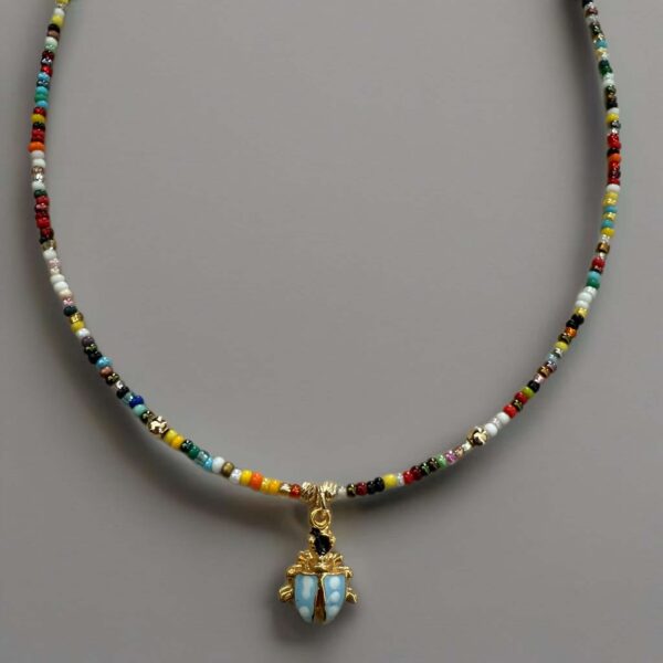 Κολιέ με χάντρες και μεταλλικό πασχαλίτσα ζωγραφισμένο με σμάλτο