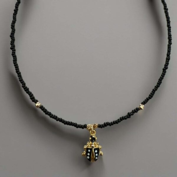 Κολιέ με χάντρες και μεταλλικό πασχαλίτσα ζωγραφισμένο με σμάλτο