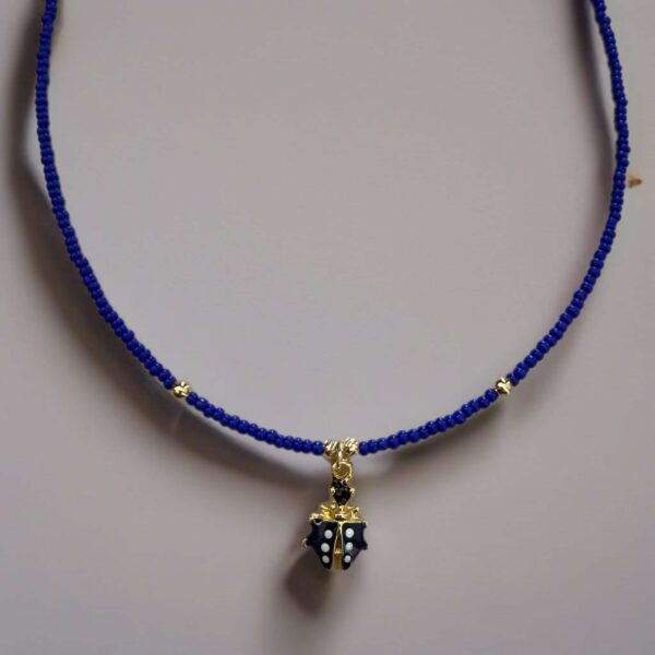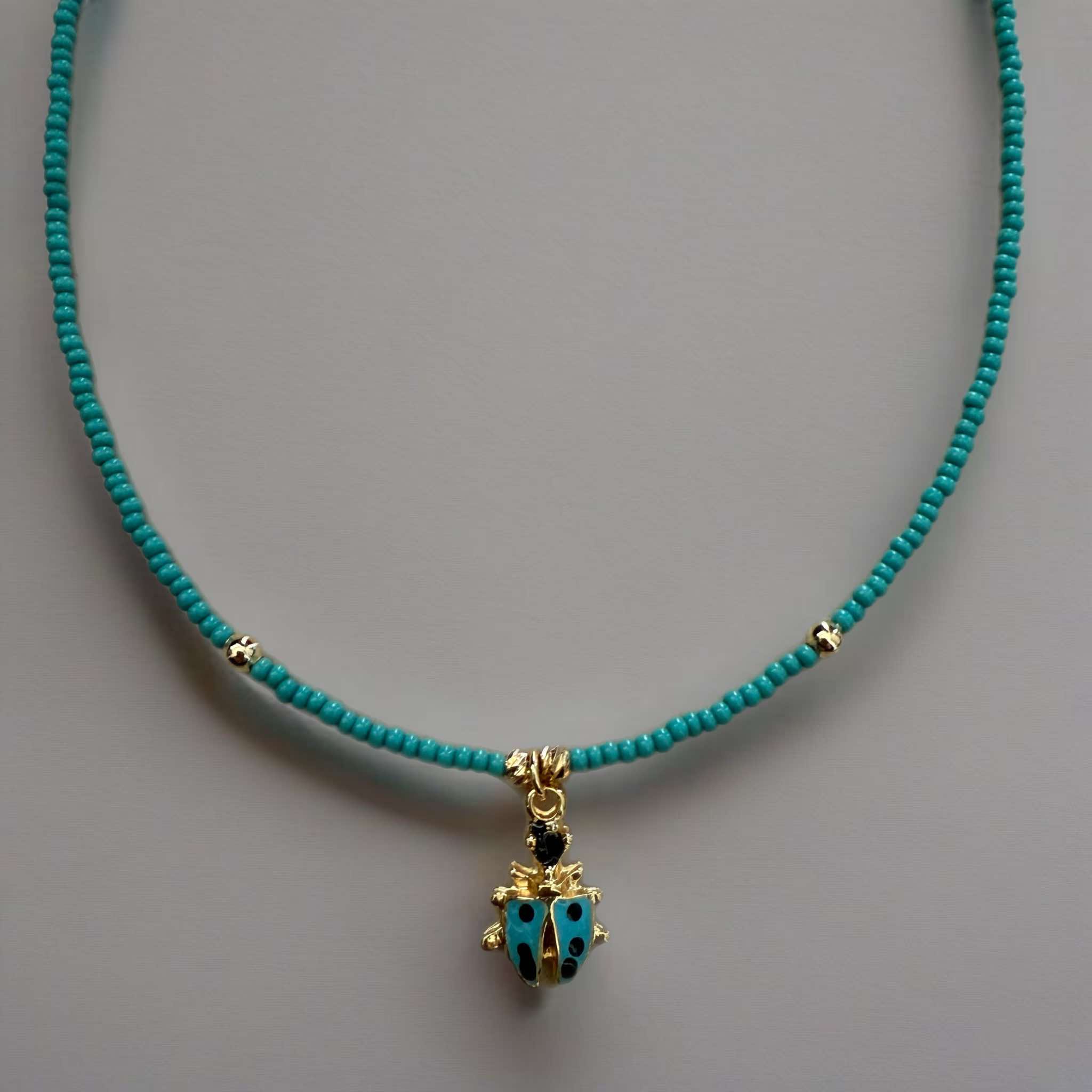 Κολιέ με χάντρες και μεταλλικό πασχαλίτσα ζωγραφισμένο με σμάλτο