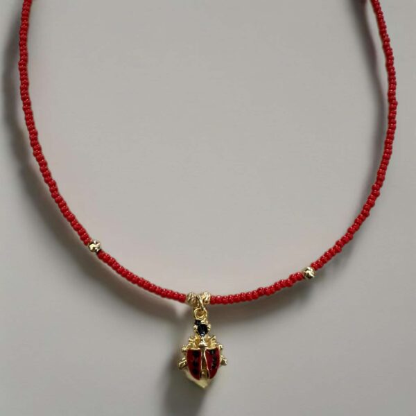 Κολιέ με χάντρες και μεταλλικό πασχαλίτσα ζωγραφισμένο με σμάλτο