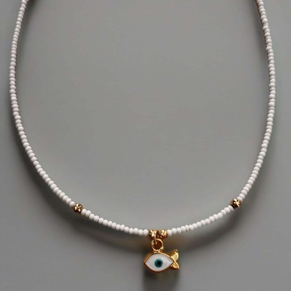 Κολιέ με χάντρες και μεταλλικό ψαράκι με σμάλτο