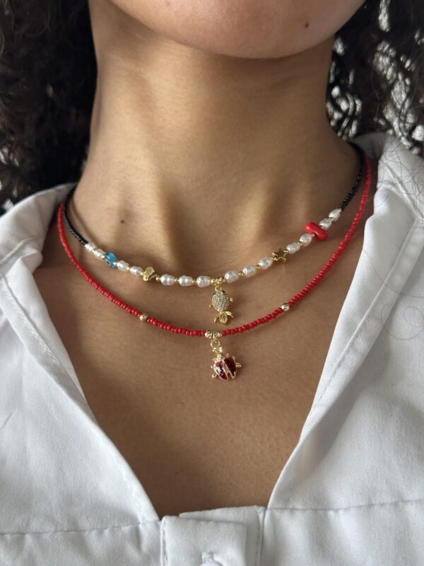Κολιέ με χάντρες και μεταλλικό αστερία με σμάλτο