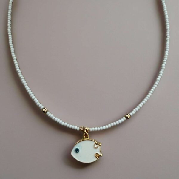 Κολιέ με χάντρες και μεταλλικό ψαράκι ζωγραφισμένο με σμάλτο