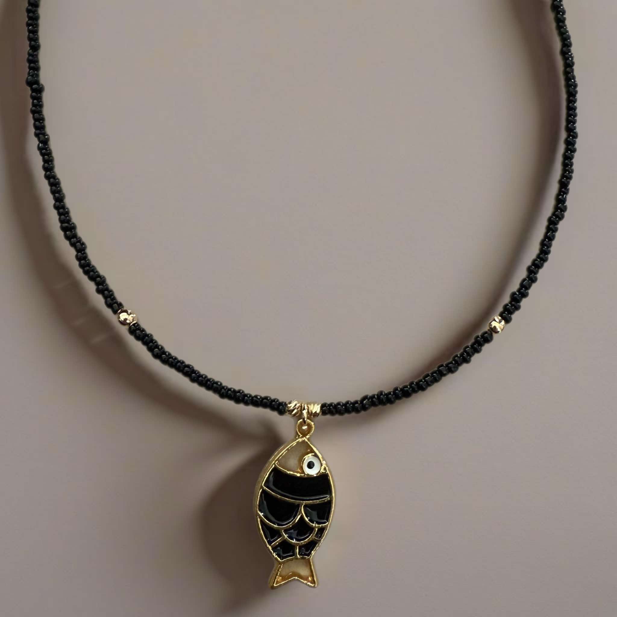 Κολιέ με χάντρες και μεταλλικό ψαράκι ζωγραφισμένο με σμάλτο
