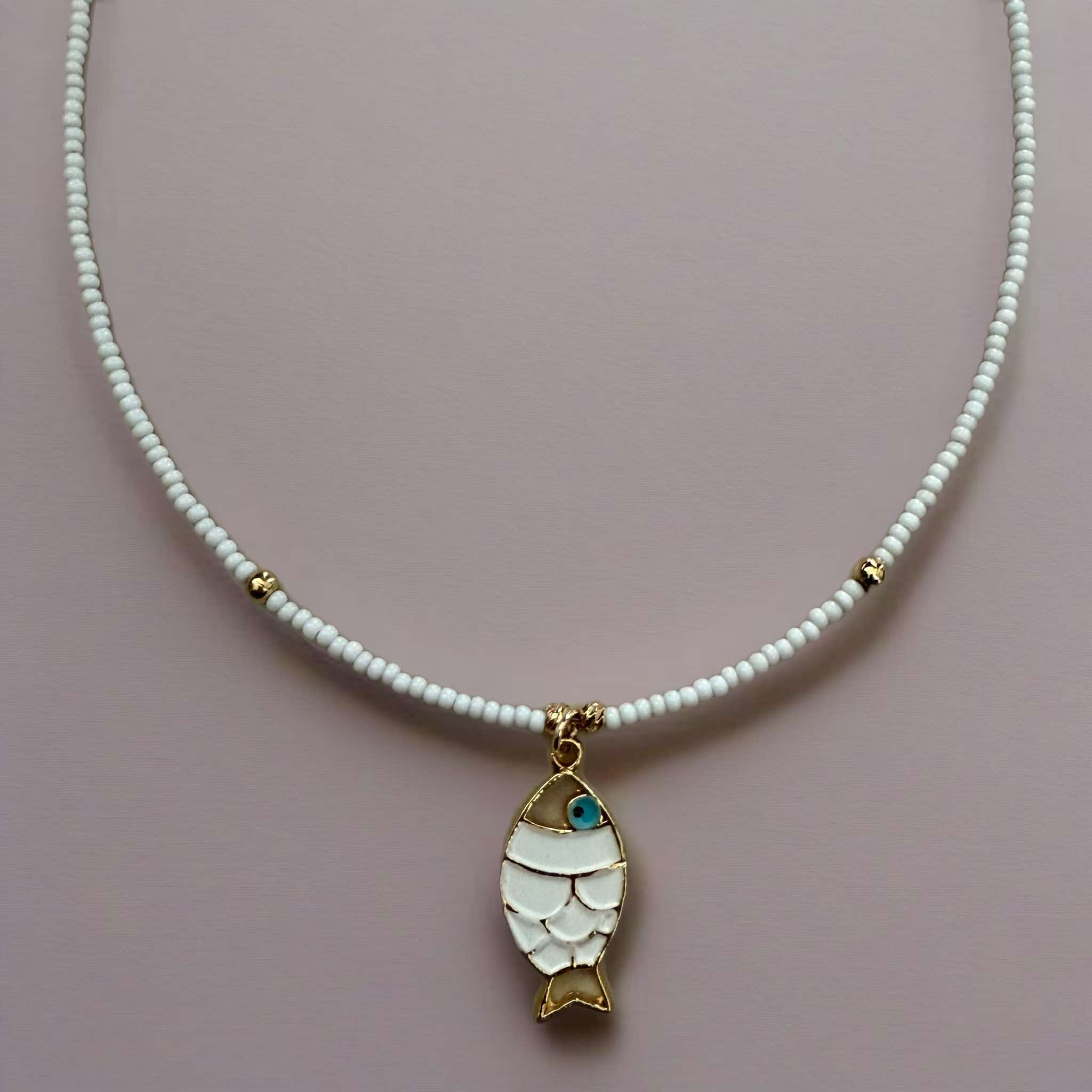 Κολιέ με χάντρες και μεταλλικό ψαράκι ζωγραφισμένο με σμάλτο