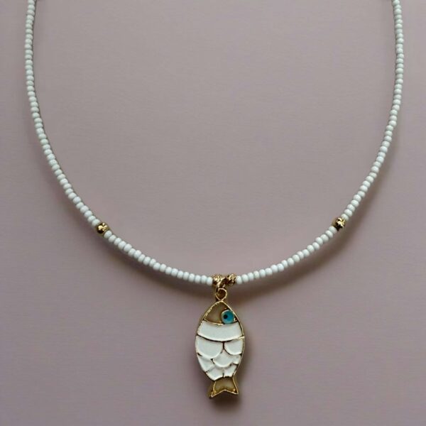 Κολιέ με χάντρες και μεταλλικό ψαράκι ζωγραφισμένο με σμάλτο