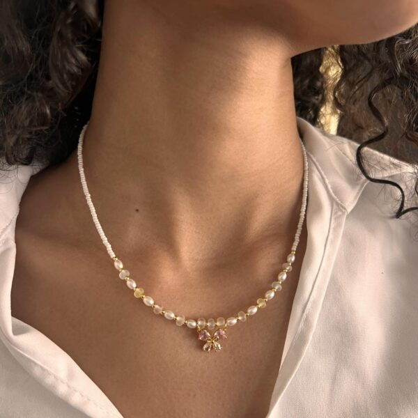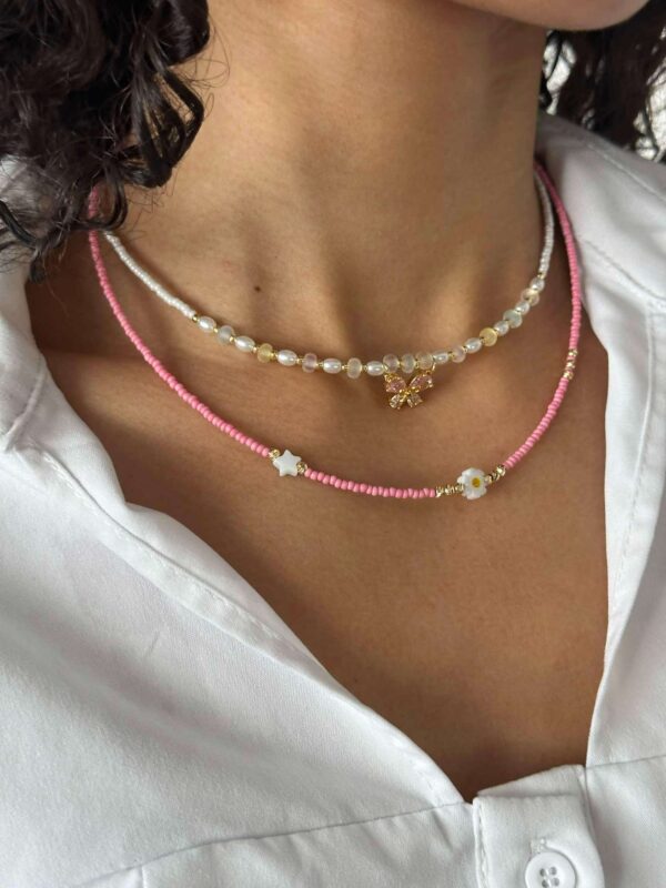Κολιέ με χάντρες και μεταλλικό πασχαλίτσα ζωγραφισμένο με σμάλτο