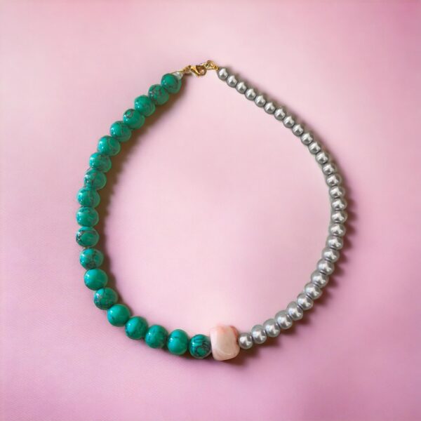 Κολιέ με βεραμάν γυάλινες πέρλες και κοράλλι