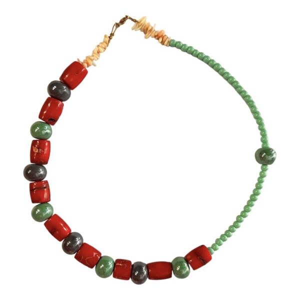 Κολιέ με κεραμικές χάντρες και κοράλι