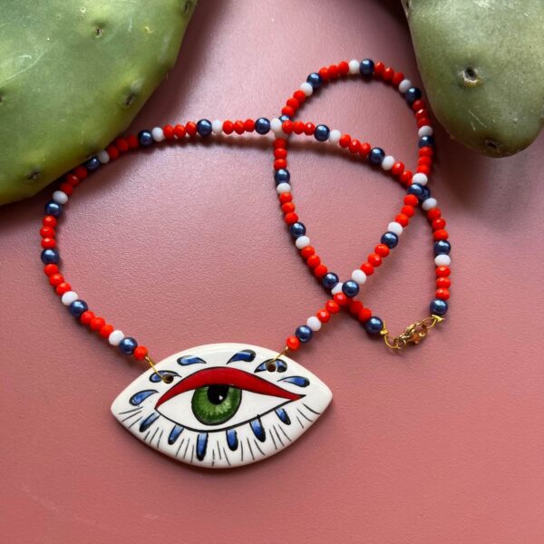 Κολιέ με κεραμικό μάτι και ακρυλικές χάντρες
