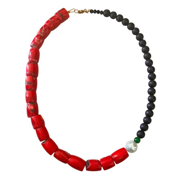 Κολιέ με χαολίτη πέρλα και ροζ αχάτη