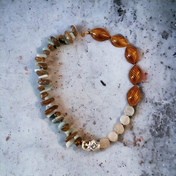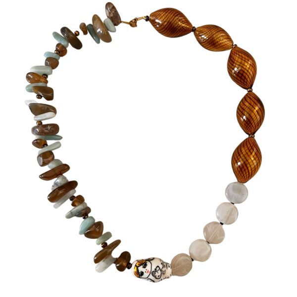 Κολιε με ορυκτές χάντρες και φυσητό γυαλί