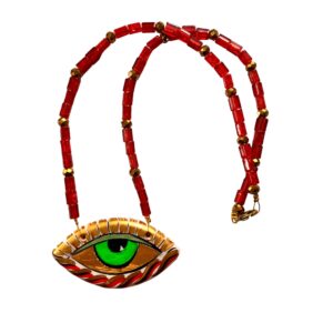 Κολιέ με ζωγραφισμένο κεραμικό μάτι με κρύσταλλα Ceme