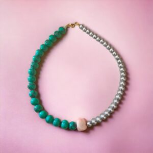 Κολιέ με χαολίτη πέρλα και ροζ αχάτη