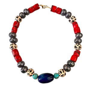 Κολιε με ορυκτές κεραμικές και ξύλινες χάντρες