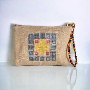 Τσάντα λινή κεντητή Squares
