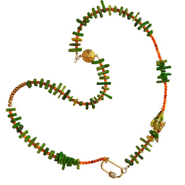 Κολιέ με ορυκτές χάντρες κλουαζονέ ψάρι και μεταλλικά στοιχεία 5