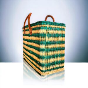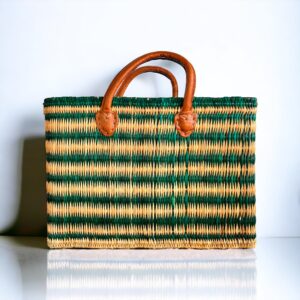 Ψάθινη τσάντα Μαρόκου δερμάτινα χερούλια Green