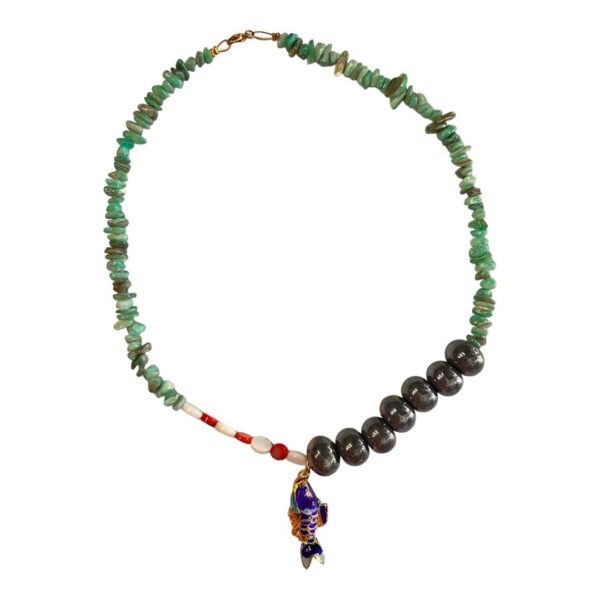 Κολιέ με ορυκτές και κεραμικές χάντρες μοτίφ ψάρι