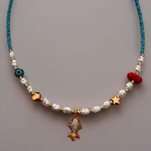 “Κολιέ με χάντρες και μεταλλικό ψαράκι με σμάλτο”