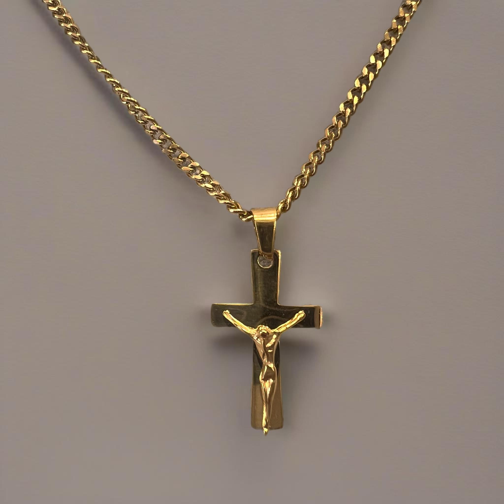 Επιχρυσωμένο κολιέ με σταυρό από ανοξείδωτο ατσάλι