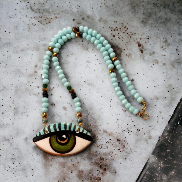 Κολιέ με ζωγραφισμένο κεραμικό μάτι κρύσταλλα Ciel