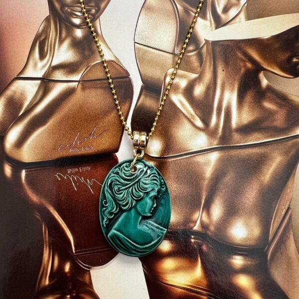 Κολιέ stainless steel με κεραμικό καμεό Eros Green