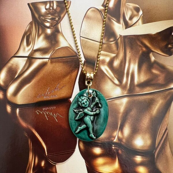 Κολιέ stainless steel με κεραμικό καμεό Eros Green