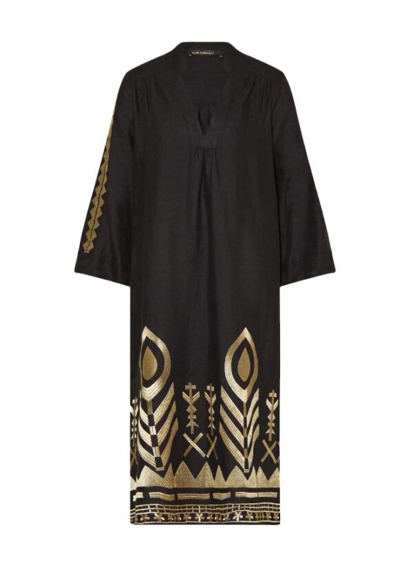 Black Gold Chemisier λινό φόρεμα με χρυσό κέντημα Greek Archaic Kori