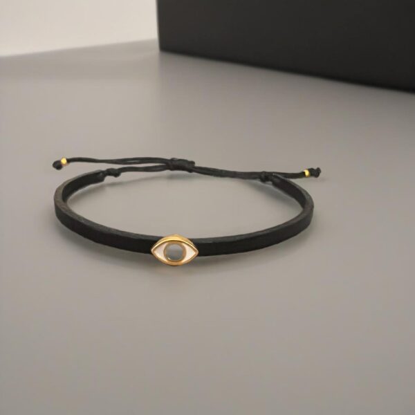 Μαύρο δερμάτινο βραχιόλι μακραμέ