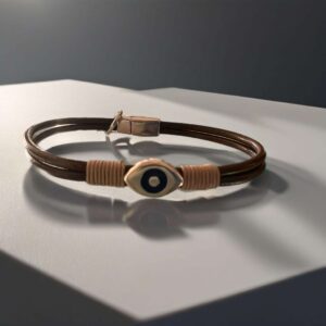 Δερμάτινο βραχιόλι με δεσίματα, επάργυρο ματάκι και μαγνητικό κούμπωμα