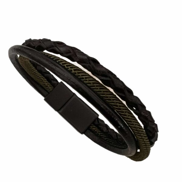 Δερμάτινο βραχιόλι με μαύρο κορδόνι και μεταλλικά στοιχεία