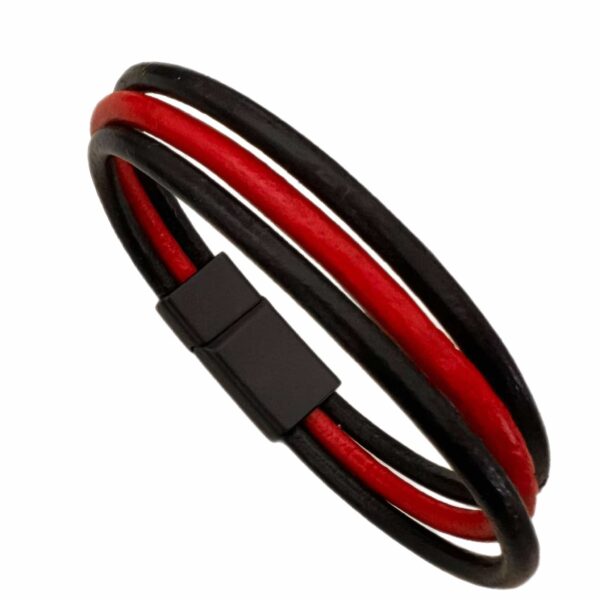 Μαύρο και κόκκινο δερμάτινο βραχιόλι