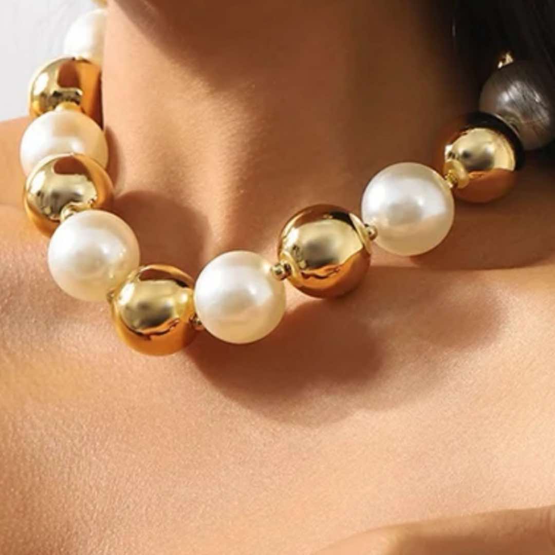 Κολιέ με πέρλες και ακρυλικές χάντρες