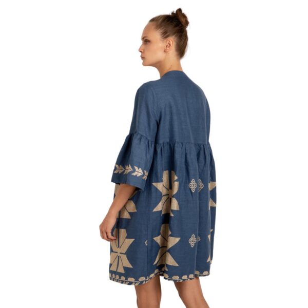 Navy Blue-Gold μίνι λινό Φόρεμα AEOLIS Greek Archaic Kori