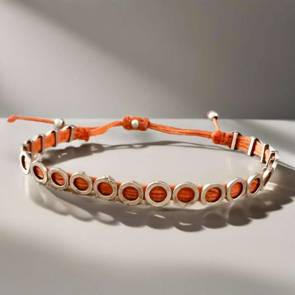 Πορτοκαλί χειροποίητο βραχιόλι με μεταλλικά στοιχεία και κηροκλωστές