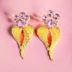 Σκουλαρίκια επιχρυσωμένο μέταλλο “Purple Feather”