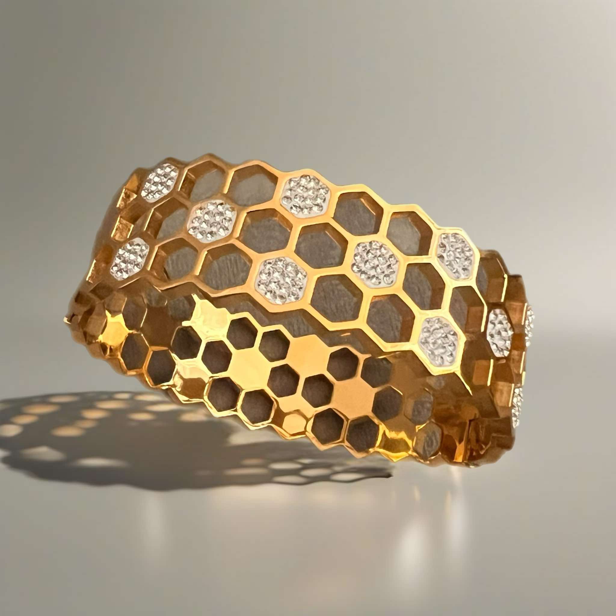 Επιχρυσωμένο βραχιόλι κυψέλη με ζιργκόν από ανοξείδωτο ατσάλι