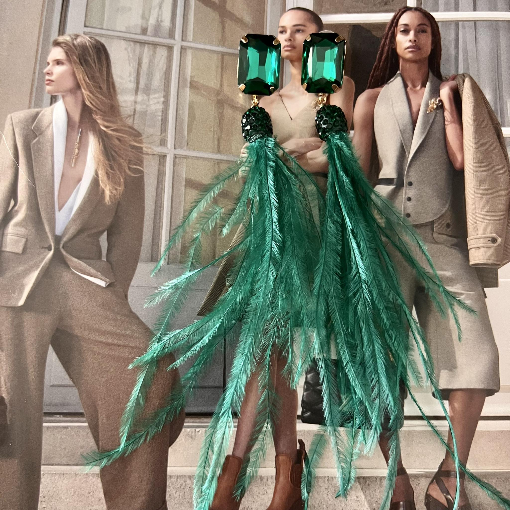 Σκουλαρίκια με κρύσταλλα και φτέρα Green II