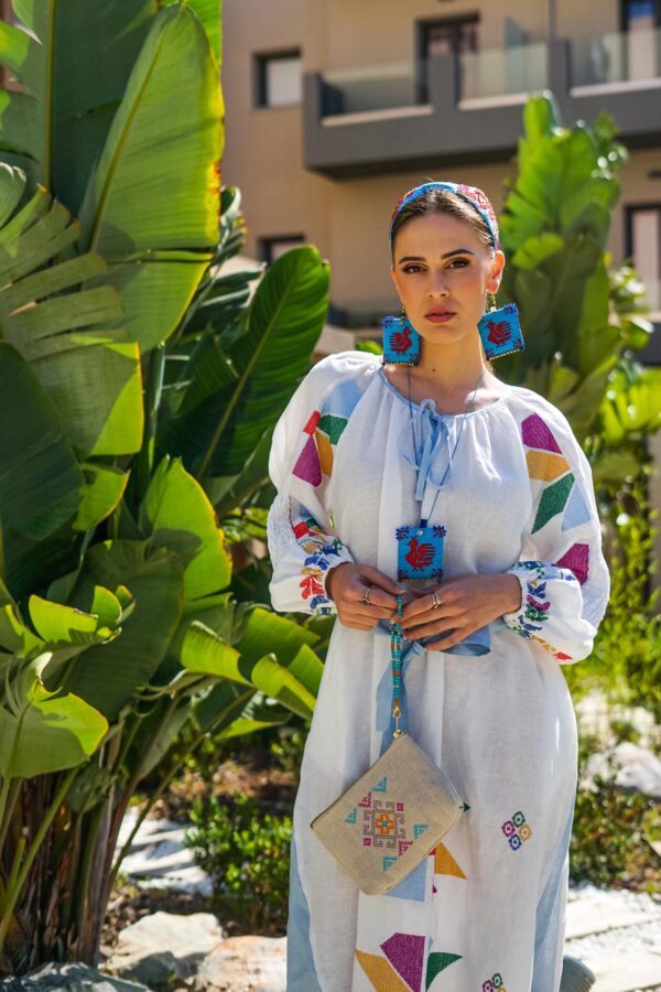 Αυτή η λινή τσάντα είναι μια εκλεπτυσμένη επιλογή για τις καλοκαιρινές σας εξορμήσεις. Κατασκευασμένη από υψηλής ποιότητας λινό ύφασμα, διαθέτει χειροποίητο κεντητό σχέδιο που προσθέτει μια αίσθηση αυθεντικότητας και μοναδικότητας.