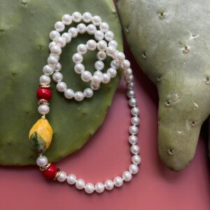 Κολιέ με κεραμικό Caltagirone Limone με πέρλες