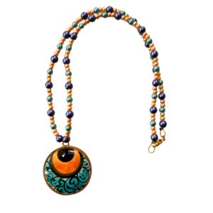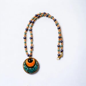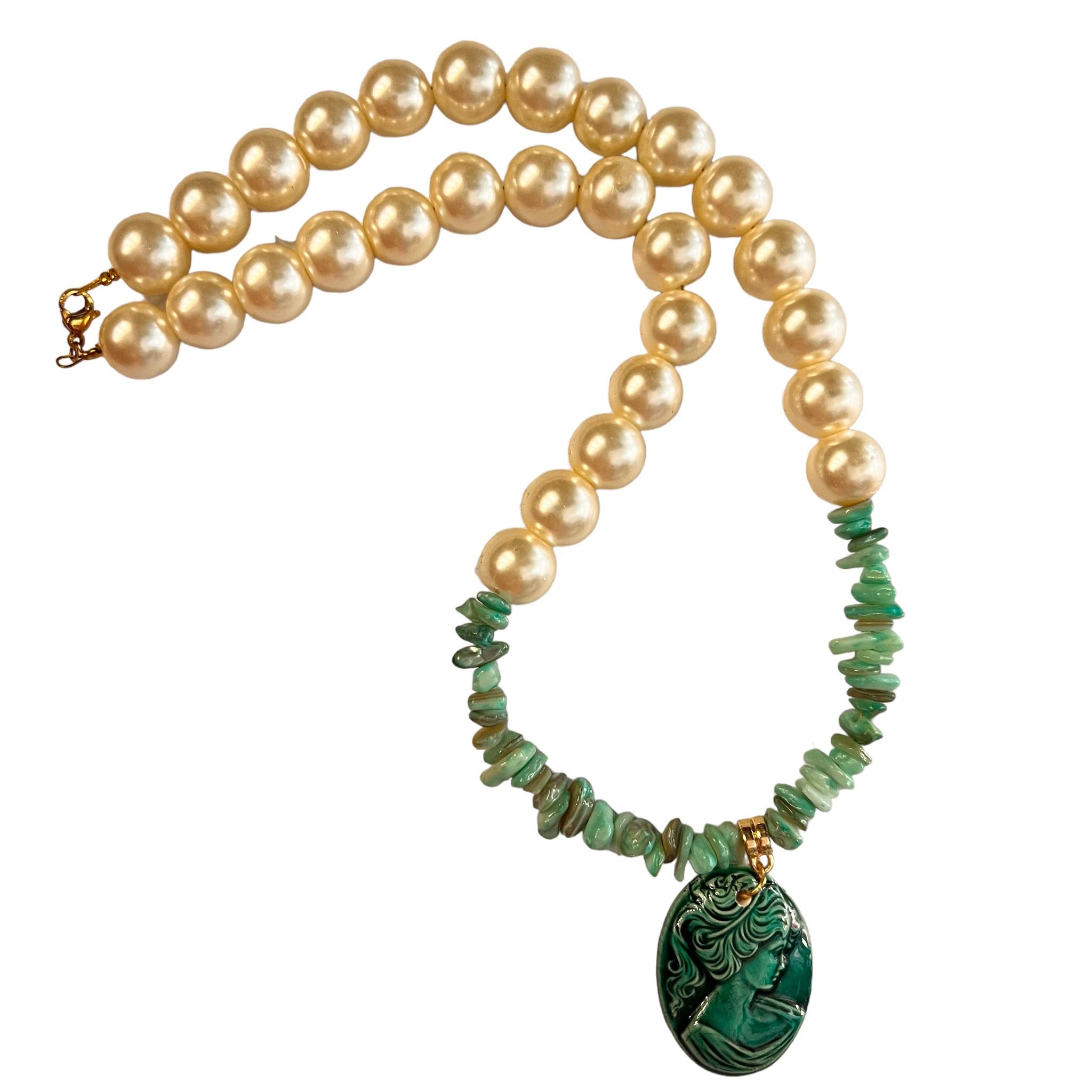 Κολιέ μετά ακρυλικές ορυκτές χάντρες και μοτίφ κεραμικό καμεο