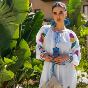 Κολιέ με ζωγραφισμένο κεραμικό μάτι κρύσταλλα Sun