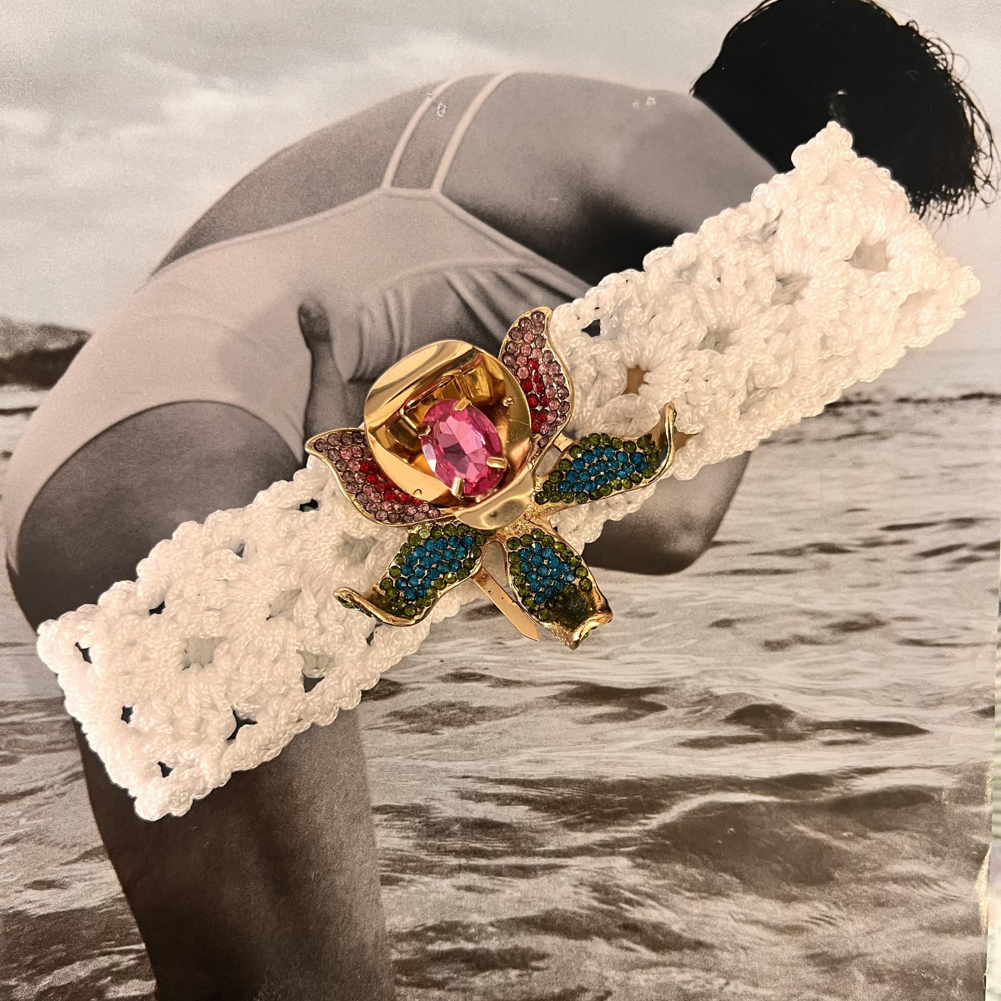 Πλεκτό τσόκερ με μεταλλική ορχιδέα και ζιργκόν