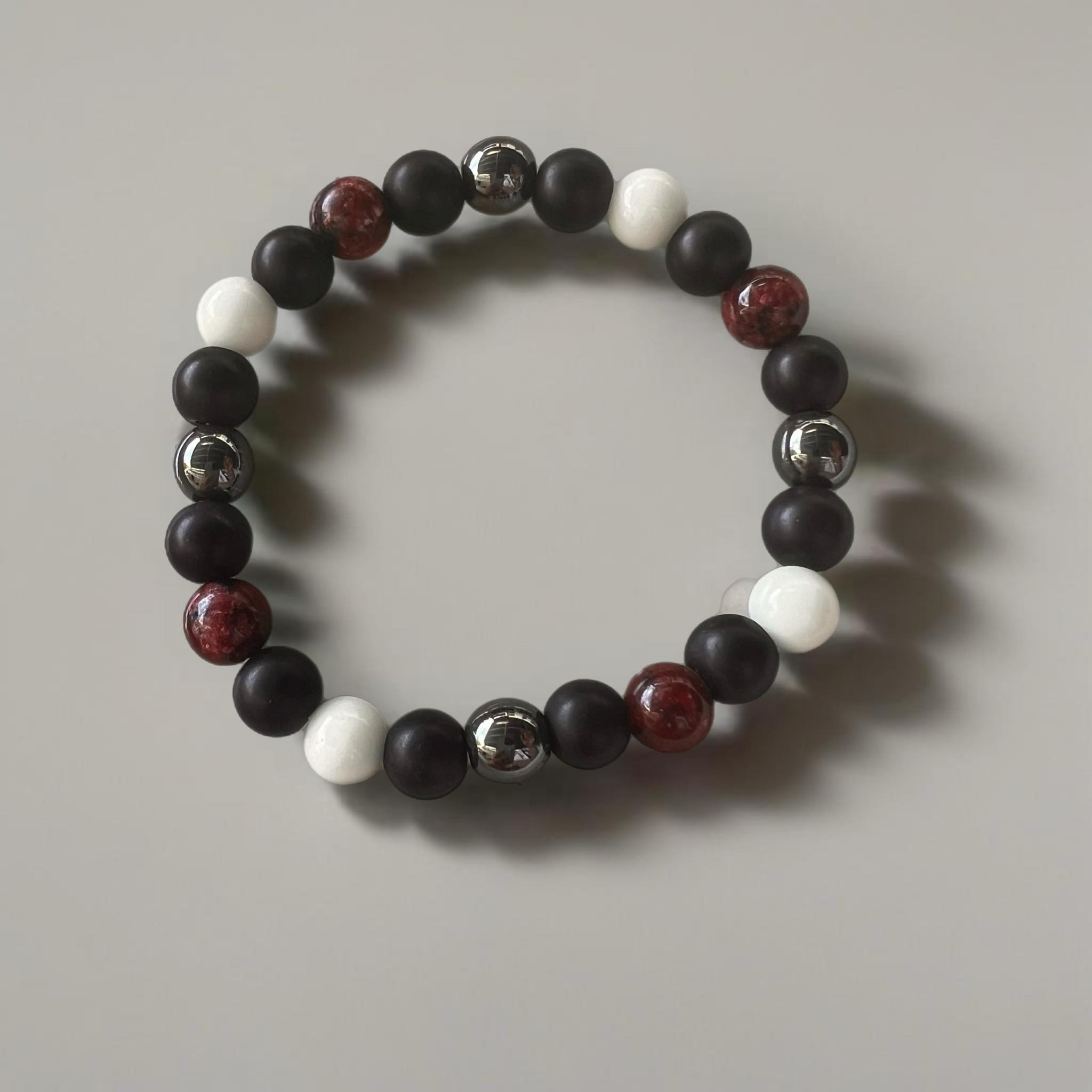 Χειροποίητο βραχιόλι με μεταλλικά στοιχεία και κόκκινες κηροκλωστές
