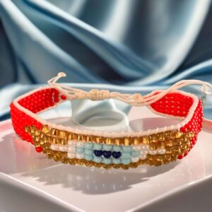 “Μπορντό χειροποίητο βραχιόλι με μεταλλικά στοιχεία και κηροκλωστές”