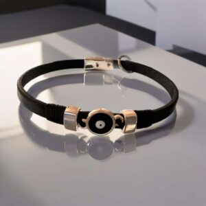Ανδρικό δερμάτινο βραχιόλι με δεσίματα, επάργυρο ματάκι και μαγνητικό κούμπωμα